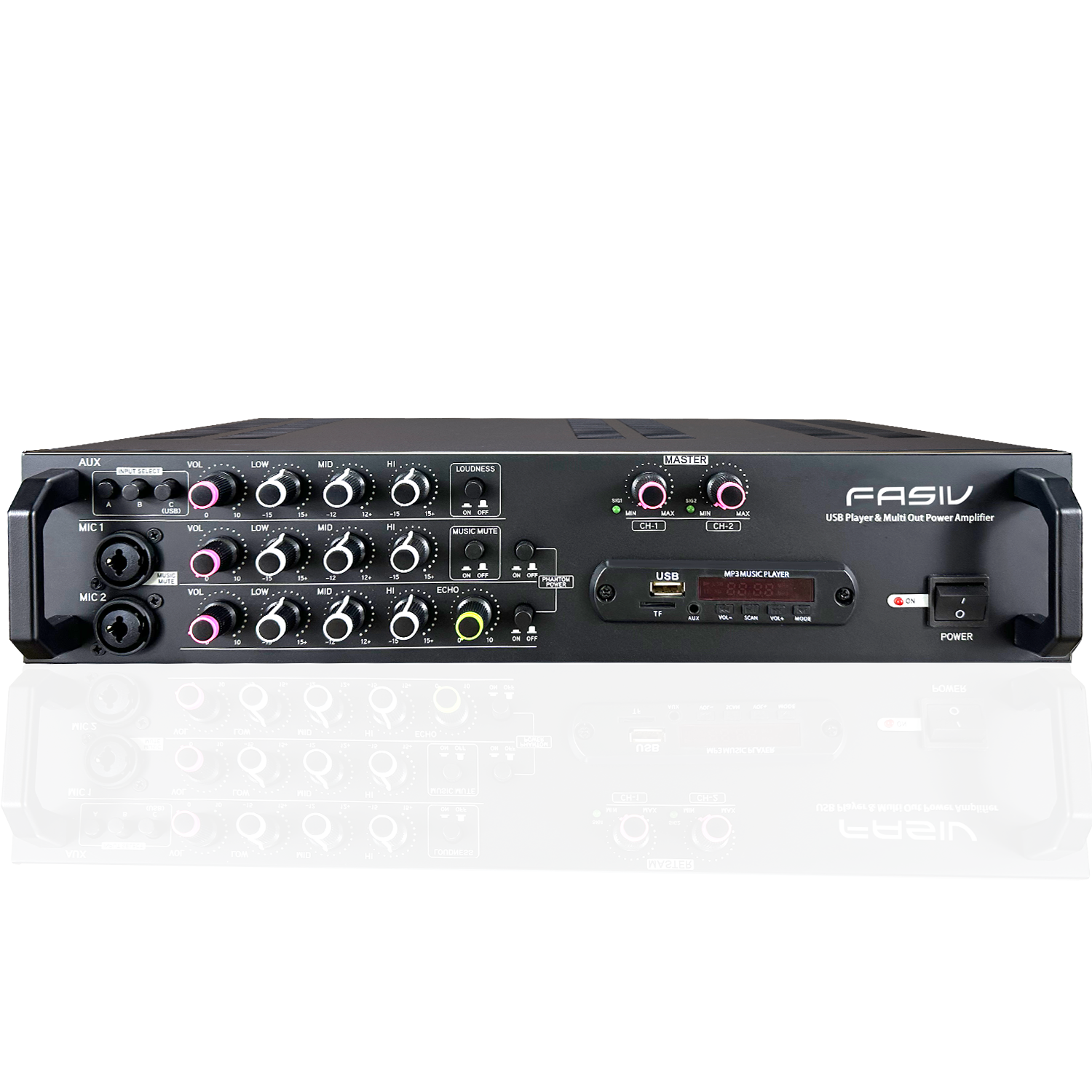 FA-1204S功放机提供180w总功率(45wx4通道),确保声音饱满震撼。配备佳能插孔端子麦克风,并特设麦克···...